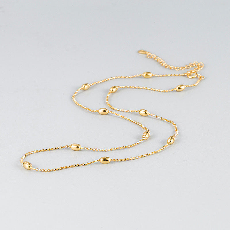 Gold Beaded Chain Necklace (18K Gold Plated, 925 Silver Base)